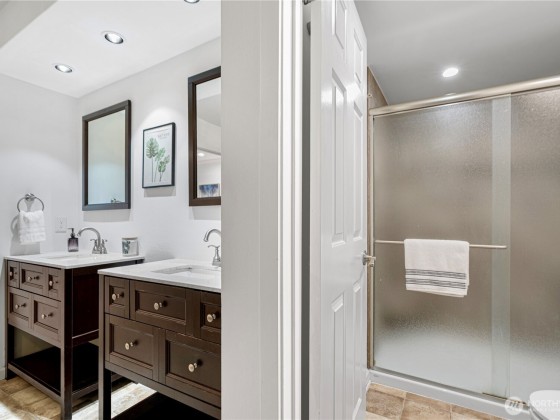 Style meets convenience in this stunning top-floor Landmark Plaza condo! With 1,797 sqft. on two levels, this rare home shines with fresh paint and elevator access. The kitchen offers stainless steel appliances, granite counters and quality cabinetry, while the dining room opens to a large deck with privacy and territorial views—ideal for entertaining or relaxing. A graceful stairway leads to two spacious bedroom suites with private baths, plus laundry, storage, and two reserved parking spots. Enjoy an unbeatable location across from Mercerdale Park and steps from Mercer Island shops, dining, trails, and parks. With Light Rail, I-90, and transit minutes away, within award-winning Mercer schools and no rental cap, this home truly has it all