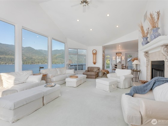 Incredible opportunity to own a one-of-a-kind 8,000+ sq ft custom home in Sudden Valley’s coveted Gate 1 with sweeping Lake Whatcom views and excellent lake access. Designed for grand living, the home features a dramatic entry with sweeping staircase, spacious bedrooms each with en-suite bath, a dedicated library, and private office. A highlight is the oversized garage and shop with 17’ ceilings—ideal for hobbyists or craftsmen. Unfinished space offers potential for a 5th bedroom, game room, or storage. Community beaches, trails, marina, golf, pool, clubhouse, and courts are just minutes away. This project home is priced accordingly; needs include roof, siding, deck, furnace, and more. Sold as-is—bring your contractor and vision!