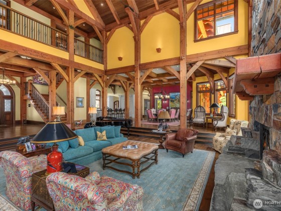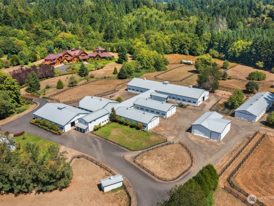 For sale for the first time; the Exclusive Elma Equestrian Estate. One of the top Equestrian Estates in the Northwest which has produced numerous US National Arabian Champions and Rider Championships. The sale includes a large 12,606 sf Krekow Jennings custom built timber frame 4 bedroom home. Within the primary home are 43 foot arched ceilings in the Great Room; and a fully appointed Kitchen with imported Clive Christian cabinets and a French Lacanche Range. There is also a 3900 sf 4 bedroom second home and 2 bedroom apartment unit for caretakers and staff. Plus 9 barns and riding areas totaling 37,693 sf of covered space with 70 horse stalls. Including several fenced in level horse pastures on 3 separate tax parcels totaling 53 acres.