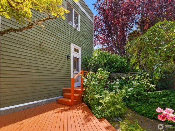 Amazing location in this secure 8-unit building, Charming 2-bedroom, 1.5-bathroom unit offers a blend of comfort and convenience across 977 square feet. End unit features a mature garden and deck off the primary bedroom. Lots of natural light, gorgeous views of the Cascades and morning sunrise. Close to downtown, Madison Park, & Cap Hill stores. Walkable to restaurants, grocery and parks. Minutes to downtown Seattle and the Eastside. Large storage unit and alley parking that includes a tandem parking space. Low HOA dues.