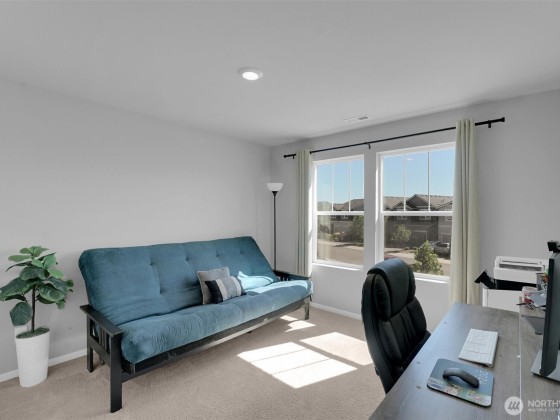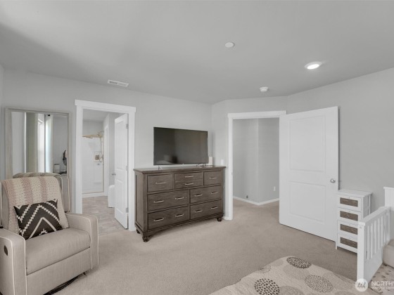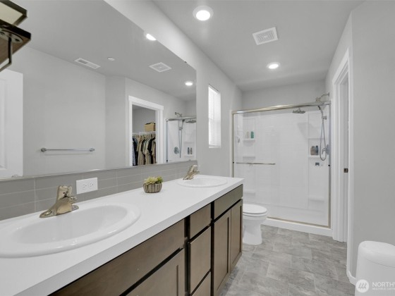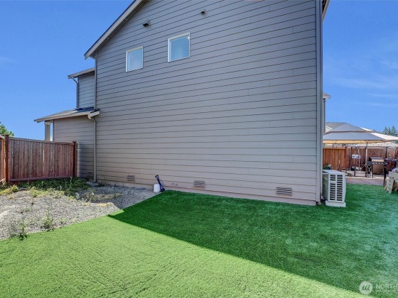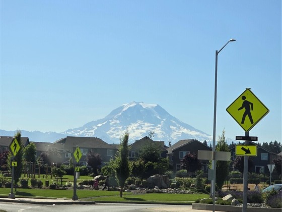 Welcome to this newer home in Rainier Ridge—where Mt. Rainier views greet you at every turn! This spacious home offers an open-concept kitchen, great room, and dining area. The kitchen features stainless steel appliances, quartz counters, full backsplash, large island, and single basin sink. Enjoy central A/C and a main floor powder room for guests. Upstairs you'll find the main suite with private bath and walk-in closet, plus 3 more bedrooms, a full bath, and laundry room. The fully fenced backyard includes an extended patio, grilling area, and low-maintenance artificial turf—great for pets! The 2-car garage features an upgraded EV charger. This home avail. for state '0' down & VA/Military programs! Contact me or your lender for details.