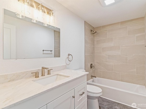 Back on the market due to buyer's financing! Incredible opportunity! Turn-key and beautifully updated, this top-level corner unit in Lake Stevens offers modern comfort and convenience. With two bedrooms and one bathroom, this home features brand new carpet and luxury vinyl plank flooring, a fully remodeled kitchen with quartz countertops, new cabinets, and stainless-steel appliances. The dining area flows seamlessly into the living space, while the bathroom stuns with sleek finishes, quartz countertops and a modern tile shower. Enjoy the privacy of a top-floor unit in a well-maintained community. Just minutes from shops, dining, parks, and transportation — everything has been done for you. Don’t miss this move-in-ready gem!