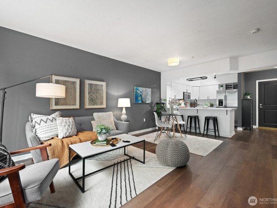Walker’s Paradise! Walk score of 98 says a ton! Located in the heart of Ballard with all the amazing amenities, from music venues, hip restaurants, and its famous farmers market. You can dip your kayak in the sound or lounge on the beach at Golden Gardens. So much to love from the fresh modern kitchen with induction range, quartz counter top, and beautiful new espresso laminate floors to new paint and 50 gal water heater. Common areas boast roof top deck gardens with gorgeous views of the Olympics and surrounding Seattle neighborhoods. Enjoy summers in the outdoor pool or reserve the party room and host stylish dinner parties. Amenities include fitness room, sauna, secure parking and on staff concierge. Get the best out of life in the city!
