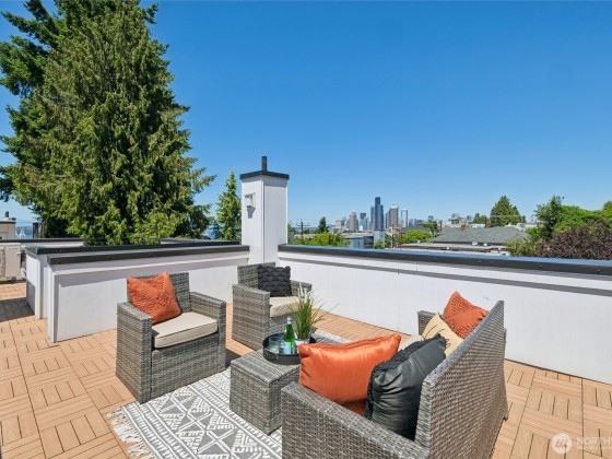 Beautiful Beacon Hill home made with modern design and sophistication. Stay cool in this 3 bed/1.75 bath AC equipped move-in ready home that's perfectly located in the heart of Seattle. Fantastic commuter location with easy access to Light Rail, I-5/I-90, and downtown just minutes away. Engineered hardwoods and new carpets welcome you in to each light filled space. Kitchen is equipped with stainless steel appliances and luxury cabinetry. Primary suite level includes walk-in closet, fully tiled bathroom, convenient laundry, and spacious primary bedroom with floor to ceiling windows featuring downtown views. Rooftop deck is perfect for entertaining guests with impeccable views of the city and sunsets. No HOA. Inspection report available.