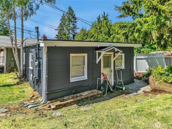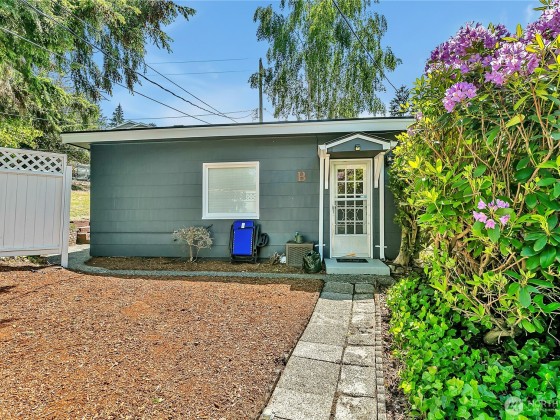 A rare opportunity in sought-after University Place! This charming 2-bedroom, 2-bath home & detached garage sit on a large 10,500 sq ft lot with the unique bonus of a 1-bedroom, 1-bath cottage, which can generate rental income covering up to 25% of your mortgage! The property is tucked away on a quiet street with a peek-a-boo view of Puget Sound & Narrows Bridge. Enjoy cozy evenings by the wood-burning fireplace or relax on the covered porch in this serene setting.Prime location - just minutes from award-winning schools, Whole Foods, Trader Joe’s, Chambers Bay Golf Course, restaurants, parks, and recreation make this home a perfect blend of comfort and convenience.Home & garage have new roofs; all new exterior paint. All appliances stay.