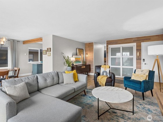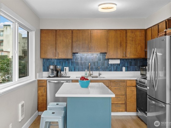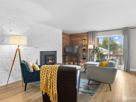 Newly added WASHER/DRYER in unit!! Beautifully updated Edgewood condo is move-in ready with over $65,000 in updates! Enjoy new windows & sliding glass door, luxury vinyl plank flooring, new trim & paint, all new appliances & mobile kitchen island. New support beam added to open kitchen & dining into large open floor plan. Bright corner unit with an open living and dining area, perfect for entertaining and west facing views. Large secure storage room. One covered parking space & plenty of street parking. Pet-friendly, small dogs & cats welcome. Enjoy amazing walkability to restaurants, breweries, shops, theater, & Edmonds-Kingston Ferry. Rare find in downtown Edmonds!