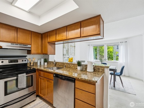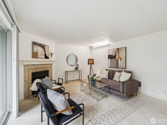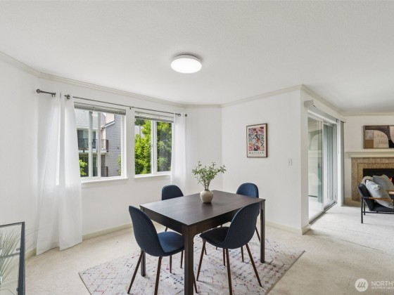 Set in comfy Juanita, this bright condo blends convenience with lakeside fun. Walk ten minutes to Juanita Beach Park for boardwalk strolls, lake breezes, and wildlife, or nip to nearby cafés and express buses. Inside, fresh lighting highlights granite counters, stainless appliances, a cozy fireplace, open walk-in closet, and in-unit laundry. Glass doors lead to a covered balcony with storage. Two dedicated parking spaces await, plus a pool and year-round indoor hot tub. Quick links to Totem Lake, downtown Kirkland, Bellevue, and Redmond—plus easy routes to Seattle via 520, I-90, or a scenic north-lake drive—put concerts, games, and nightlife at your door, all in the respected Lake Washington School District.
