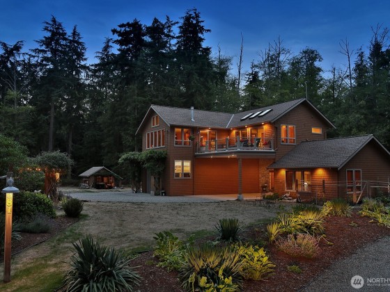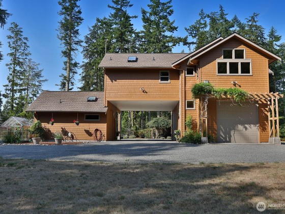 Discover a serene Whidbey Island retreat just moments from Greenbank Farm, off-leash trails, shops and the beloved Greenbank Pantry. This custom-built home sits on 5 private acres with meandering trails, mature landscaping and a sense of tranquility. The expansive garage offers pass-through doors & soaring ceilings, perfect for RVs/boats, storage or hobby projects. Inside, enjoy timeless craftsmanship with warm vertical grain fir trim, vaulted ceilings, a sunroom filled with natural light and a deck ideal for morning coffee or sunset wine. A covered breezeway connects to a private casita with en-suite bath and plumbed for kitchenette. Centrally located between South Whidbey and Coupeville, this property offers both privacy and convenience.