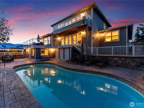 Stunning MillBay Beach Residence waterfront community and private slip located on the North Shore of Lake Chelan.. The residence offers over 3,250 square feet of luxurious living. The kitchen is a true statement piece, featuring Dacor appliances and custom cabinets. The outdoor living area is equally impressive, the CUSTOM POOL, an 8-person in-ground SPA, a fire pit, and an outdoor kitchen, all perfect for enjoying the Chelan Lifestyle. Offering 4 spacious bedrooms, 4 bathrooms, and a 3-bay garage, including a boat bay. There are multiple living spaces on each level, including a pool-side cabana, kitchenette, and washroom with shower. This home is a must see, it is truly serene!
