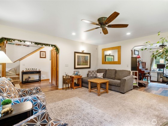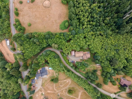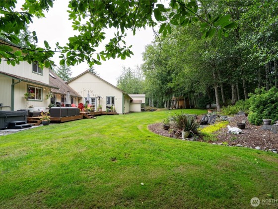 Welcome to your own private retreat! This stunning, custom-built home sits on 5 beautiful acres & includes a fully finished 728sq ft ADU perfect for guests, multi-gen living, or a rental. Tucked away for ultimate privacy, this serene property backs directly to Port Blakely w/access to miles of trails. Step outside & relax by your own tranquil pond, unwind in the hot tub, or enjoy peaceful evenings on the spacious back deck surrounded by nature. Inside, the main home offers quality finishes, two spacious living areas, and thoughtful design with 4 beds & 2.25 baths. The attached garage provides convenience, while the shop is a dream come true for hobbyists or mechanics w/a car lift included! Seeking country living, this property has it all!