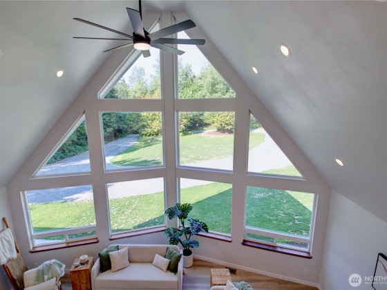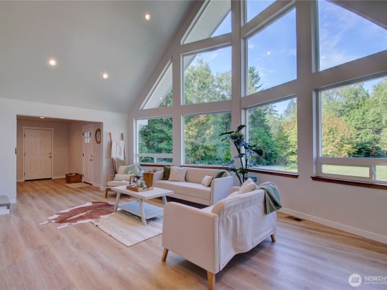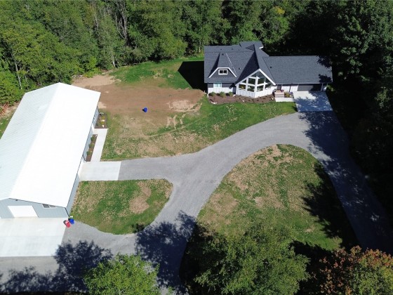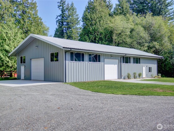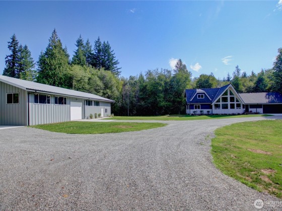 Welcome to your private retreat on just under 5 acres! This beautifully remodeled home features stunning A-frame windows, a brand-new kitchen, updated baths, new roof, flooring, and efficient heat pump. Everything is new in this home! The main floor offers 2 bedrooms (including en-suite) plus an office, while the upper level boasts a spacious primary suite and bonus room. A massive 2,400 sq ft shop provides endless potential—complete with a fully renovated 2-bed ADU, ideal for guests, rental, or multigenerational living. Peaceful and secluded, yet minutes to I-5, lakes, and trails. A rare gem—don’t miss it!
