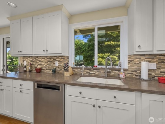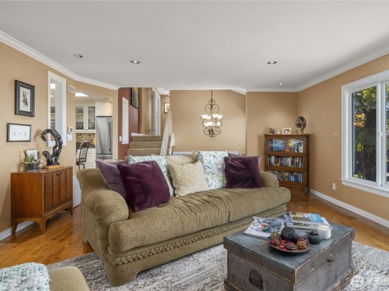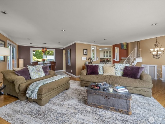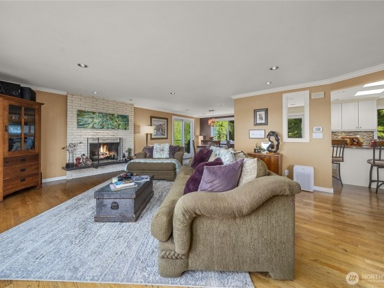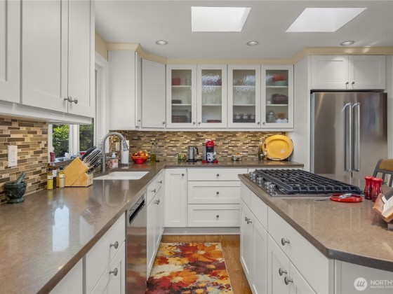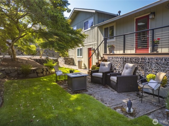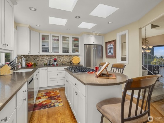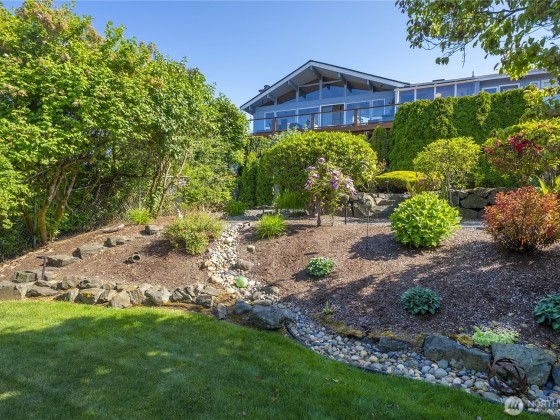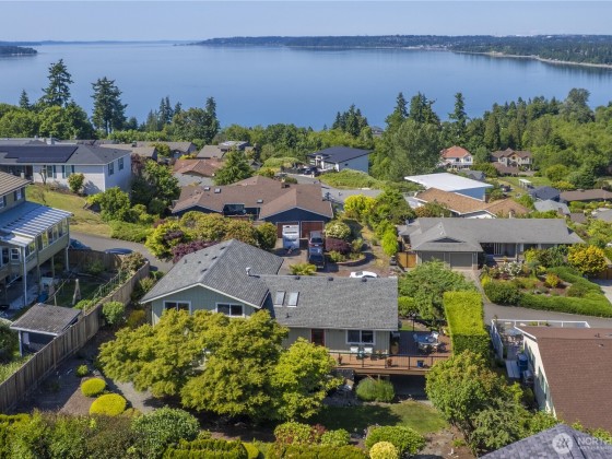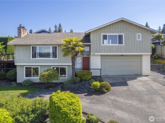 Perched high above the street, w/ Sweeping Bird’s-Eye Views of Puget Sound, Islands & Mt. Baker, this beautiful home offers privacy, peace & “move-in-ready” comfort! Upon entering, you’ll discover natural light, hardwoods & the perfect blend of comfort & design. You’ll LOVE your Fully-Updated Kit w/ Quartz, SS KitchenAid Appls(5-Burner Gas Range), an Island Breakfast Bar, Double Pantry/Soft-Close Cabs, Under-Cab Lighting+. The adjacent DR provides access to the ~14x20 AZEK Entertaining Deck w/ Views! The Primary Bdrm also has abundant windows framing the Gorgeous Sound Views & an Updated Quartz Bath! Lower-level has a Very Spacious FR w/ Flex Space/an Extra-Finished Room/Updated Utility room/Patio access. So much more; read info in photos!