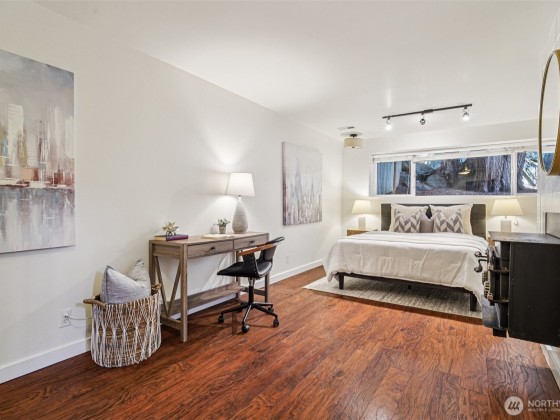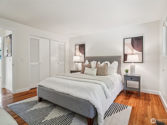 Stellar mid-century modern in Richmond Highlands! This turnkey 4-bed home in a quiet cul-de-sac awaits you. Fully fenced in private backyard with covered patio perfect for entertaining and dog run. Oversized two-car garage with room for small shop and built-in sauna. Main level features open kitchen with slab granite counters and eating area, formal dining room and living room. Main bedroom with ensuite and two additional bedrooms with full bath. Bedroom on lower level with powder room and bonus living area. Fresh paint throughout, hardwood and tiled floors on both levels. All in a prime location with highly rated Shoreline Schools, shopping, and restaurants. Short distance to St. Luke’s, Einstein, Boeing Park & transit.