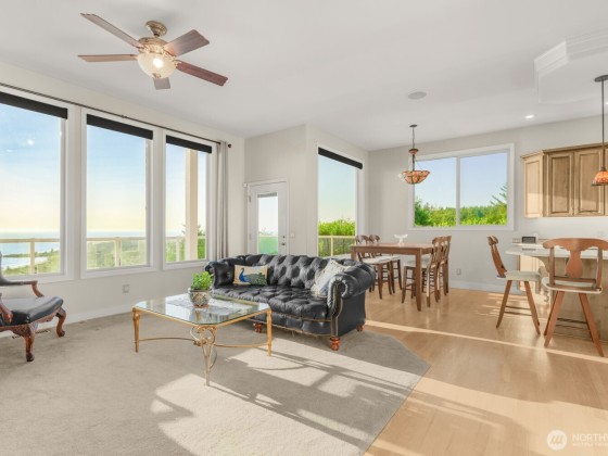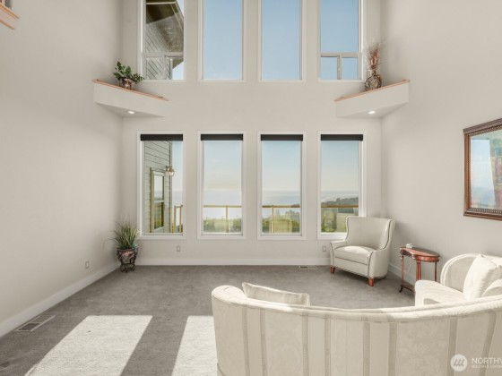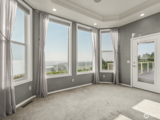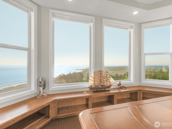 Enjoy breathtaking views of the Pacific Ocean, Willapa Estuary, and miles of sandy shoreline from this 4,000 sq ft home in the gated Willapa Heights community, just 15 minutes from Westport. This 4-bed, 4-bath retreat features a main-level primary suite with panoramic vistas, spa bath, walk-in closet, and deck access. Vaulted living room with picture windows, multiple view-filled living spaces, a gourmet kitchen with walk-in pantry, formal dining, office/library, theater, and expansive sun deck offer comfort and elegance. Set on 5 serene acres with a 3-car garage and lush landscaping, this home blends privacy, luxury, and stunning sunsets, all near Shoalwater Bay Casino.