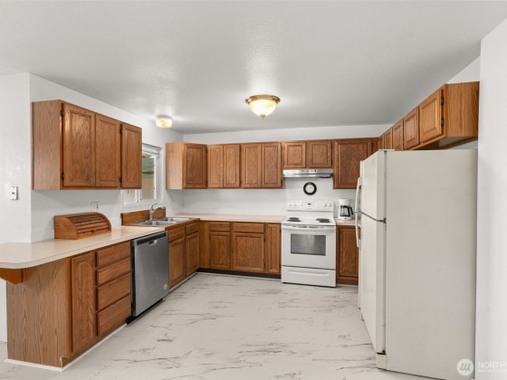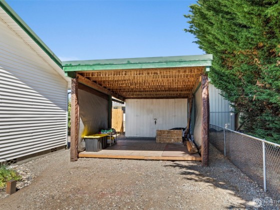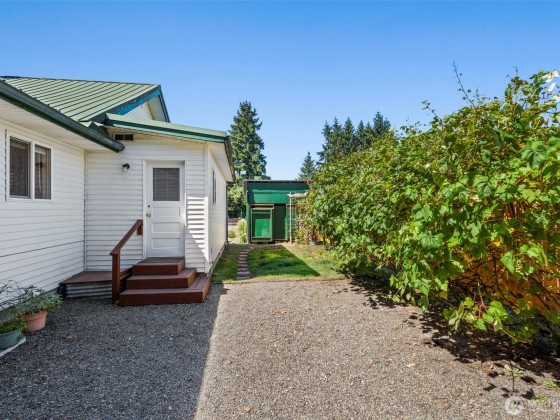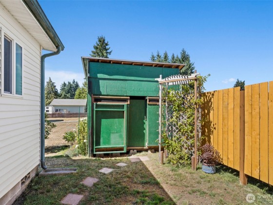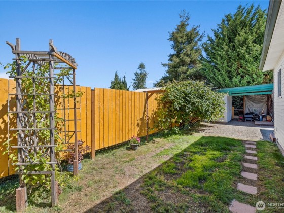 $1500 carpet credit! Charming 4-bedroom, 1.75-bath home tucked back from the road in a quiet, well-established neighborhood! Enjoy a spacious open-concept living area with a cozy fireplace and a desirable split-bedroom floor plan with the private primary suite on one side, complete with an adjoining ¾ bath and the additional 3 bedrooms on the opposite side of the living area. The fully fenced yard features a privacy fence in back, garden boxes, a woodshed, and a firepit—perfect for outdoor entertaining. Fruit lovers will appreciate the pear, plum, and apple trees, raspberries and grapes! Covered front deck, large carport with additional storage, and plenty of space for all your needs. A peaceful setting close to schools, parks and I-5.