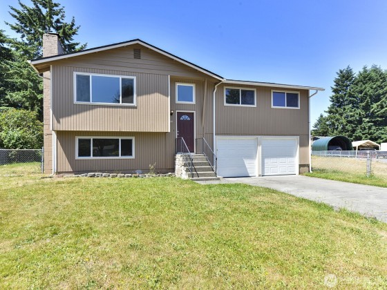 This updated home sits on a big .31 acre lot with most of the land in the fenced backyard. 504 sq ft 2 car garage plus plenty of room for parking your RV or boat. Large outbuilding is partially finished, would be excellent for storage, game room, or maybe get the band back together? The house may have been built in the 70's but it sure doesn't look like it inside. Freshly painted, new flooring. Updated kitchen includes all appliances. Dining room off kitchen. Upstairs living room with fireplace and lower level fam room with fireplace. Bathrooms have been remodeled and are looking good. 1,672 square foot of living area, 3 BR (possible 4th), 1.75 baths. An affordable home, move-in ready.