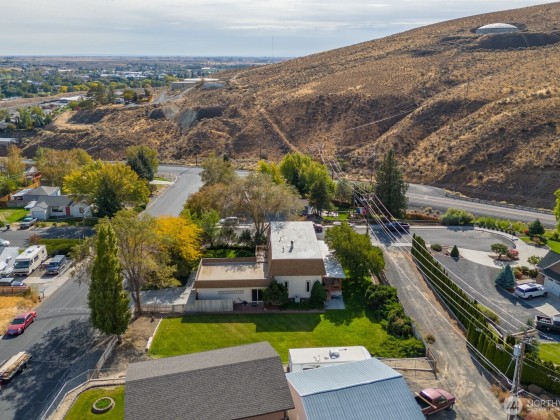 Spacious home with room to roam. Nestled in the hills on a generous double lot, this 3 story property offers versatile living spaces & ample storage. Main Level: Attached 2-car garage, granite tile entry, ½ bath, a light-filled living room with slider to a covered deck, a kitchen featuring a cooking island, tile countertops, ample cabinetry, pantry, dining rm w/fireplace, family room. (Pool table opt.) Upper Level: 4 bedrooms, 1 ¾ bath, laundry closet (washer/dryer included). Lower Level: Oversized garage, shop area, 1/2 bath, bonus room, more storage. Recent updates incl all new windows (2023), new roof (2023). Enjoy outdoor living w/a rooftop deck. Low-maint. yard w/mature landscaping.