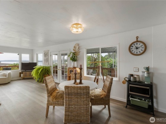 Charming 55+ Community Home w/ Stunning Puget Sound View. Welcome to this beautifully updated home, perfect for comfortable & easy living. Enjoy a breathtaking view of the Puget Sound from the large front & side decks, ideal for relaxing or entertaining. Inside, you will find new LVP flooring throughout, fresh paint, light fixtures, new dishwasher & fridge, both baths have new sink & counter top. The electrical including the panel, siding & windows have been replaced. A cozy wood-burning fireplace for the cooler evenings. A well-maintained fenced yard w/a garden area & a 2-car side-by-side carport. Plus, you're just a short walk to the scenic Redondo Beach boardwalk, offering the perfect blend of a quiet community & active coastal living.