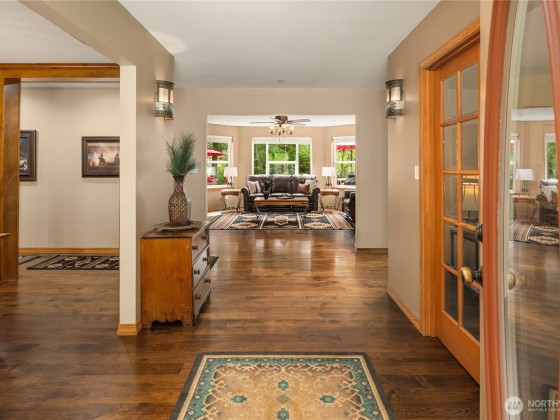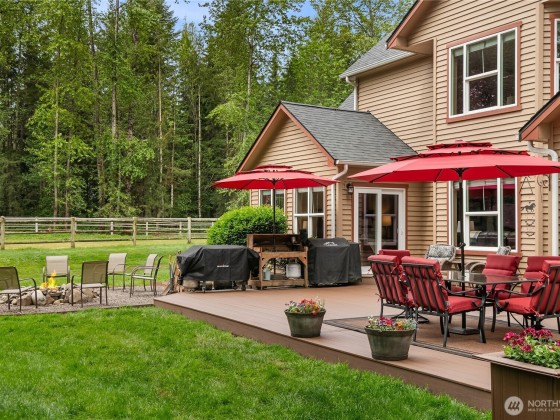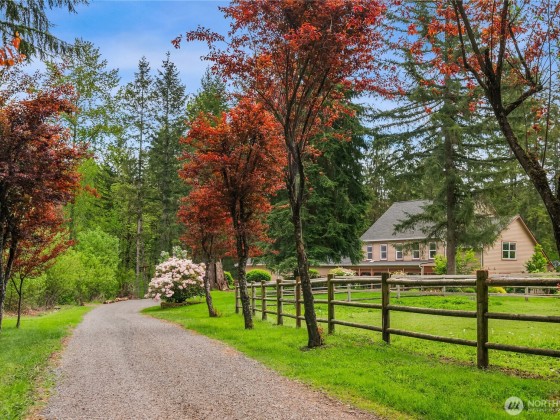 A Slice of Paradise! Stunning Equestrian Property with 3,810 SF Home on 20 acres in Tolt River Highlands. The tastefully remodeled 2-Story features 4 BR, 3.5 BA, Den, Bonus Room & Flex Space. Recent remodel includes custom kitchen, luxurious 5-piece primary bath, hardwood floors, quality solid wood doors & much more! Equestrian amenities include: Barn w/ 7 (12x12) Stalls with 12x24 half-covered paddocks attached. Tack Room. Hot/Cold Wash Rack. 25 Ton Hay Storage. 80x160 Outdoor Arena. 60x120 Covered & Lighted Arena. Round Pen. Pasture Turn Out. Trailer Parking. This private setting boasts gorgeous mature landscaping, circular driveway, RV parking w/30amp power, a dirt bike track & shed. A rare opportunity! Only 15 minutes to all amenities.