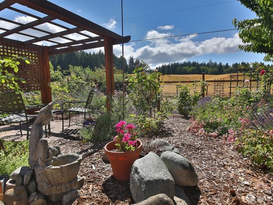 Surrounded by exquisite gardens & a pair of grand Firs, this delightful Langley home lives BIG (5 bedrooms) while still maintaining its classic charm. Hardwood floors & vaulted ceiling entry flow into an open, light-filled & flexible floor plan that includes a main-level bedroom & 3/4 bath. A spacious Primary Suite & a garage w/ workshop space too! Updates incl. ductless mini-splits, remodeled bath w/ soaking tub & propane fireplace. Maintain the add'l lot as part of your pvt. oasis or dream into the development possibilities. Enjoy expansive views of Fossek Farm & a peek-a-boo view of the Sound & Cascades. A short stroll to Langley's quaint seaside village w/ restaurants, shops, theaters, beaches,& parks. Welcome to Langley, Welcome Home!