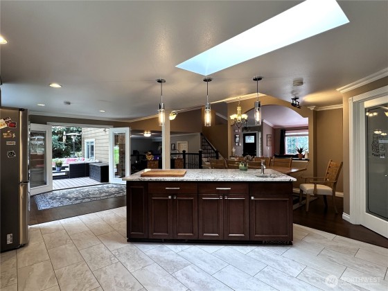 Perfect location for this beautiful light filled home with an amazing layout. Rare luxurious remodel w/stunning high-end finishes throughout- entertainers dream w/open concept, vaulted ceilings, skylights & inside/outside living. Huge chef's kitchen w/commercial GE 54" 6 burner range & double oven, slab granite counters, large island, 2nd sink, heated floors w/tons of storage & counter space. Main level w/wood fpl, lower rec room w/gas fpl & large enough to be 4th bed (buyer to verify). Half an acre fully fenced private park like yard w/covered patio, oversized cabana to host year around parties, large shop w/electricity, water feature, garden beds, fire pit & fruit trees. Close to future light rail, restaurants & shopping. Your dream home!