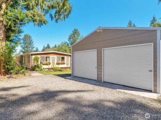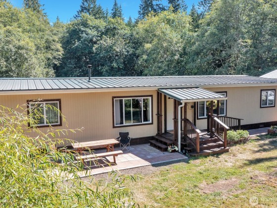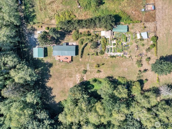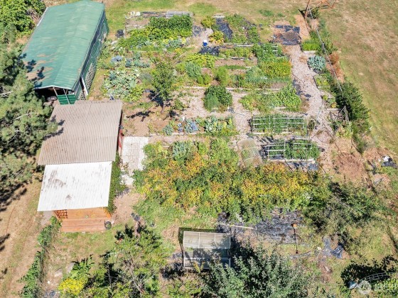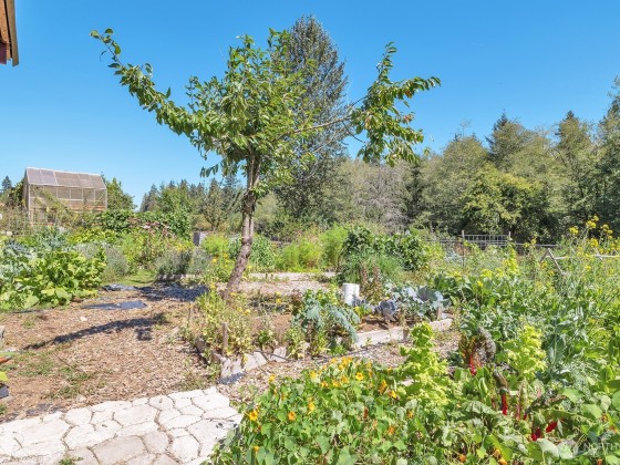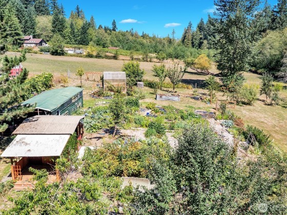 Looking for a completely turnkey home with a large, detached shop on acreage? This 3 bedroom, 2 bath home sits on 3+ acres, a private oasis with stunning gardens, orchard, greenhouse, gardener's cottage, chicken coop & much more. Large detached garage with extra storage overhead. House features brand new oversized deck with incredible views overlooking spacious, private yard and luscious well producing fruit trees. Apples, peaches, nectarines, apricots, blueberries, raspberries, blackberries and vegetables. RV parking. Dead end road. Private creek and greenspace surround two sides of the property, bringing you close to nature. Close to shopping, schools, and highway.