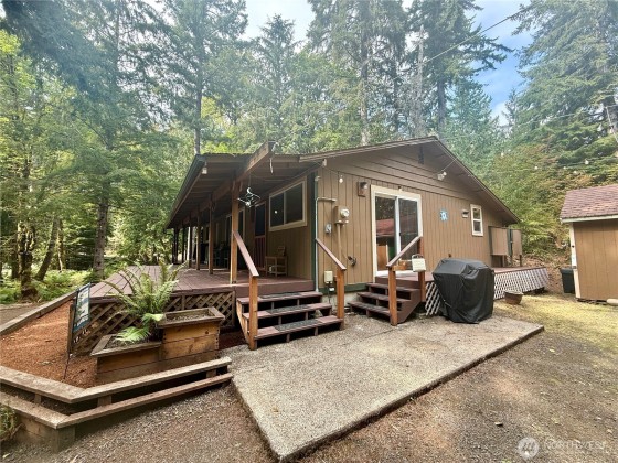 The perfect cabin in the woods at beautiful Lake Cushman in the coveted Mt. Rose Division! Short walking distance to the lake and park, & beautiful view of beaver pond from the property! RV Parking & hook up, x-large outbuilding for your toys, a large covered firewood storage area, extra parking space, & large fire pit to enjoy friends & smores! Beautiful updated kitchen w/ backsplash and Corian counters, updated bathroom, newly painted decks, engineered hardwood floors throughout, 2 big bedrooms plus large den/bonus room & large decks for entertaining! Perfect for your full-time home, get-a-way or STR investment! Pre-inspection report available, 13-month home warranty & Lender paid credit up to 1% of loan amount for qualified buyers!!