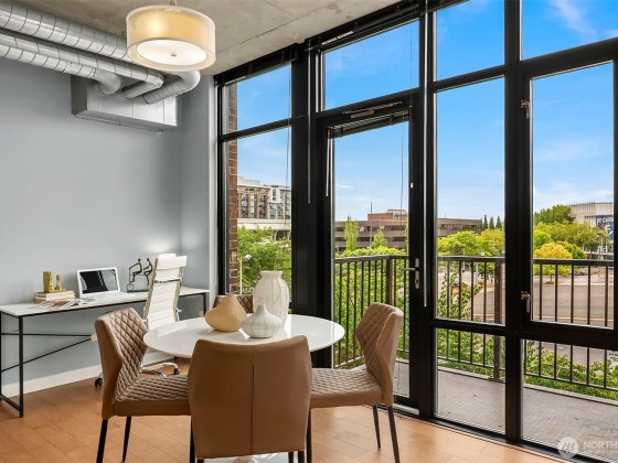 Over $20k in recent updates! Step into the vibrant, artistic energy of Seattle at the iconic Mosler Lofts. This recently updated corner-unit home blends industrial character with modern luxury. Soaring floor-to-ceiling windows, sleek finishes, and the most iconic view in the city: the Space Needle, framed perfectly from your living room, dining area, and private balcony. Inside, you’ll find a modern open floor plan with thoughtful updates, including a new kitchen island, upgraded lighting, and custom built-in closets & vanities. A stylish kitchen designed for entertaining, complemented by secure garage parking for convenience. Building amenities elevate your lifestyle with a lush rooftop garden/fire pit/BBQ, offering mountain & water views.