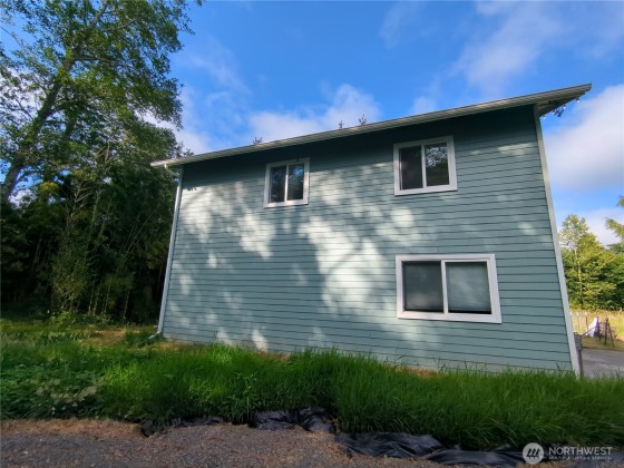 SOLID DRY light & bright mostly re-modeled 2-story home= CONCRETE exterior walls, both stories! What wind? What noise? And NO AC needed! This 3-bedroom cutie at the end of a quiet cul-de-sac has a ¾ bath on each floor. Upstairs= a welcoming kitchen with an off-set pantry. The open dining room, 2 bedrooms & a bath put the square footage to good use (no hallway!) Ground floor = primary bedroom, living room, w/d hookup in bath, good storage space under stairs. Pellet stove = toasty in winter. Outside= fenced side yard with Old Hickory shed & an Asian pear tree! Lengthy driveway. Get your water toys or just plan a picnic play day at the private lake as part of the Rushlight Estates development (NO HOA!) Neighboring lot also for sale.