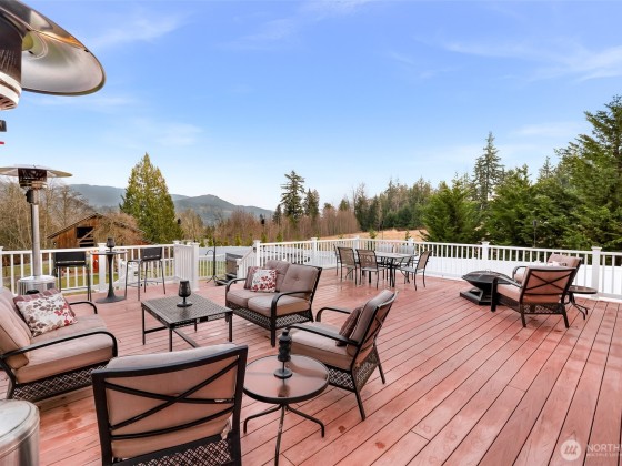 A one-of-a-kind 3 bed plus office with a view home in an incredible location with stunning valley and mountain views. Privacy abounds—surrounded by nature and a wide-open skyline. Towering cedars & firs provide a park-like feel without blocking light. The open floor plan features main living upstairs to maximize the view, including from the home office (watch for the eagles soaring over the valley). Enjoy multiple gathering areas inside and out, a fenced yard, barn, multi-level deck, fire pit, and outdoor movie area. Power-gated entry and paved circular drive. Just minutes from lakes, trails & mountain biking or shopping & dining in Fairhaven, Bellingham, and Burlington from this incredible and private view home.