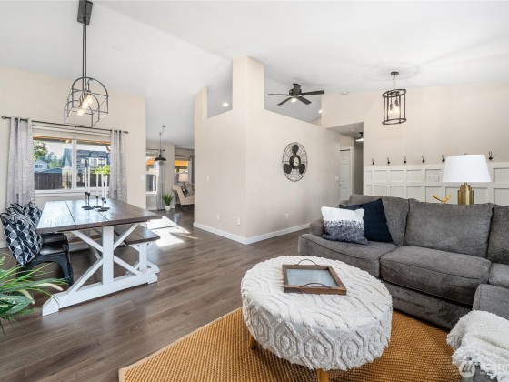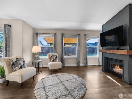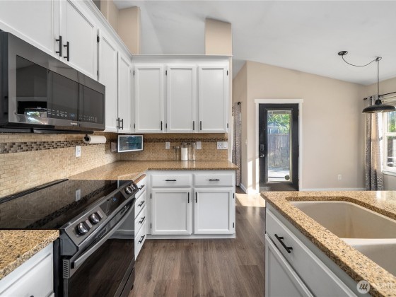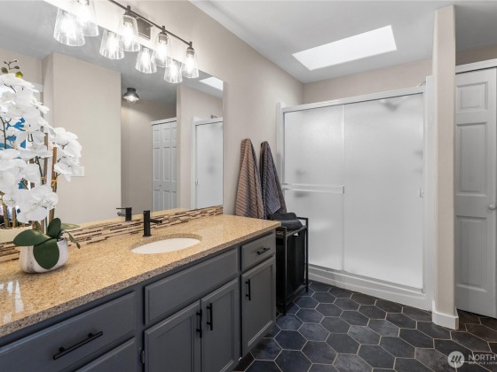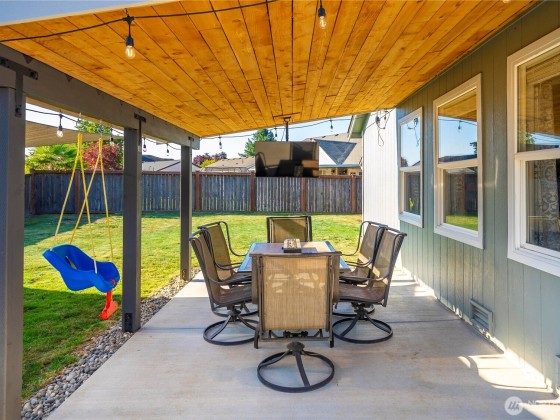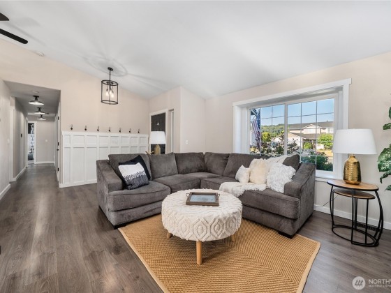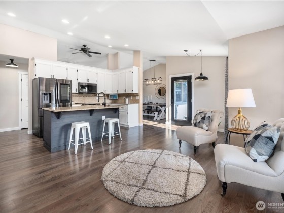 Compelling new price! The desirable Whitehawk neighborhood of Orting. Enjoy living in this highly sought-after small town with Mount Rainier as your scenic backdrop. Inside, you will be greeted by tall vaulted ceilings, walls of windows, and loads of natural light. The best floor plan features a great room, kitchen, and a lovely outdoor living space to create year-round memories. Find your zen here; check out your spacious primary suite. A long list of well-planned updates includes AC, RV parking with power, a generator hookup, a gas line for outdoor living and BBQ. New paint, vinyl plank floors, and numerous improvements a modern delight, move-in ready. Fully fenced backyard. Bring your toys load up for your weekend escape!