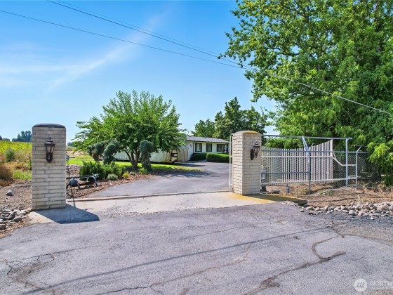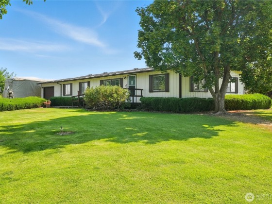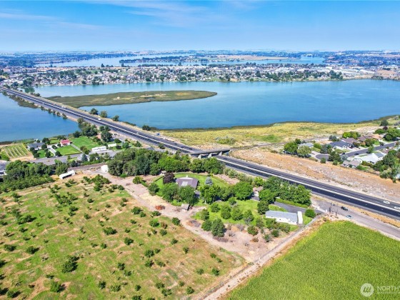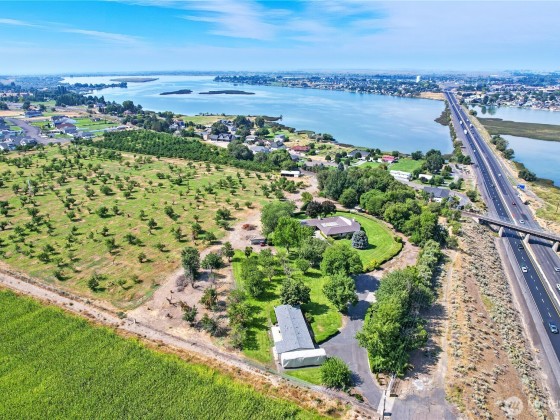 Stunning custom rancher on 4+ acres with commanding views of Moses Lake! Brazilian cherry hardwoods & an atrium-centered floorplan fill the home with natural light. The sunken living room boasts a marble fireplace, while the kitchen offers custom cabinets, granite counters, built-in fridge & pantry. The layout includes a primary suite with spa bath, stand-alone tub, walk-in shower & dual closets, plus 2 guest bedrooms, 2 baths & an unfinished basement. A guest house adds 3 beds, 2 baths & a garage—ideal for multigen living or a rental. Parking includes an attached 2-car garage, detached 2-car garage & 30’x40’ shop. Lush grounds &an estately feel complete the property. Immaculately maintained & thoughtfully updated. A rare Moses Lake estate!