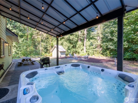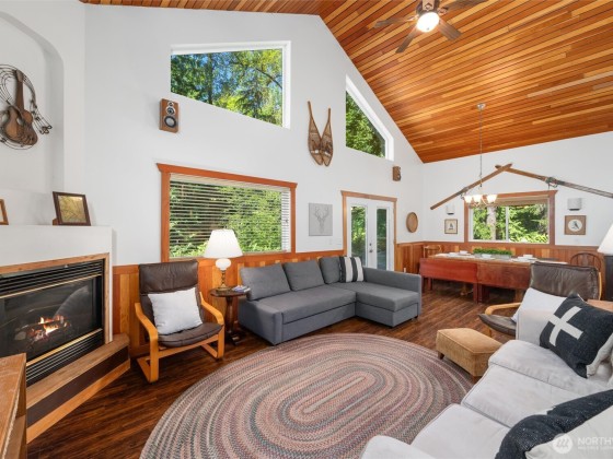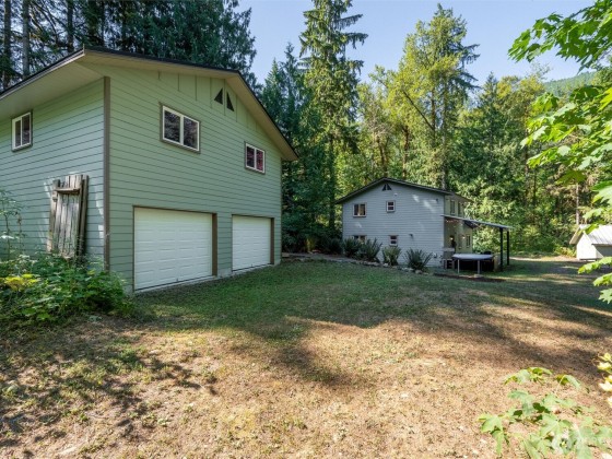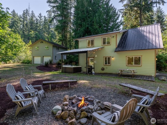 This beautifully kept private chalet-style mountain retreat rests on a tranquil 1.26-acre wooded lot above the Nooksack River. The open floor plan features a spacious kitchen flowing into a vaulted great room, with one bedroom on the main floor, three upstairs, two full baths, a pantry, and laundry room. Enjoy the new hot tub, expansive deck, or gather around the firepit. A rare two-car shop offers added potential with a roughed-in space for an ADU. Currently a thriving Airbnb, this property is perfect as a vacation home, income-generating rental, or full-time mountain escape.