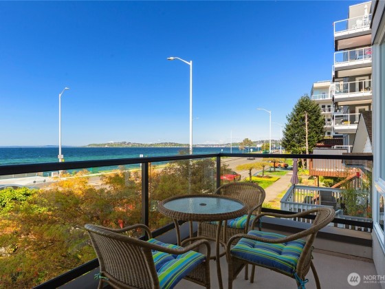 Welcome to wireless views of Puget Sound & Olympic Mountains. Watch marine traffic and the everchanging seasonal display of the Olympics. Formal entry onto hardwood floors in living room, dining room and kitchen. Seaside balcony for morning coffee. Chef's kitchen, gas cooktop, granite counters, garden window over sink, pantry and storage room. Oversized primary bedroom with five piece ensuite bath and walk-in closet. Run, bicycle or stroll along Aki Beach to the restaurants & coffee shops or catch the water taxi to down town Seattle. This is a lifestyle as well as a destination. Get your broker to show it to you, you won't be disappointed.