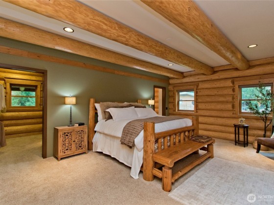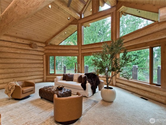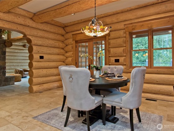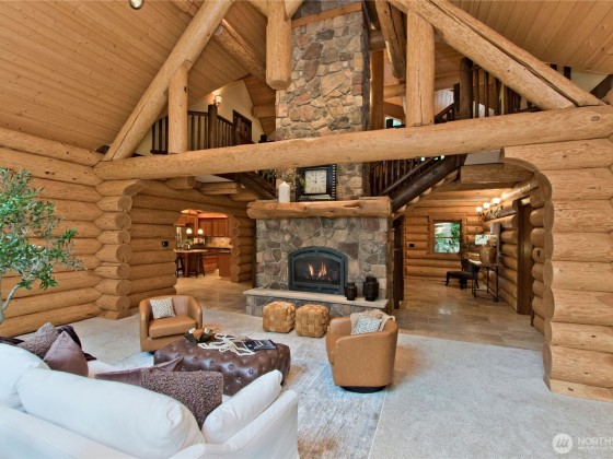 Indulge in this unparalleled spanning custom built luxury 5,000+ sq ft 5 bedroom log home on 1.25 acres with a detached garage/shop. Vaulted ceiling with floor to ceiling windows giving natural light and a pasture view to flow through. No corners cut on this home with the travertine floors, chefs kitchen with DCS appliances, chiseled edge granite counter tops, built-in pullouts. Main level primary with French doors opening to the deck. Upstairs boasts 2 massive bedroom with each their own bathrooms and a loft. Down stairs is another 2,160sq ft of living space. It has been framed and plumbed for bathroom, kitchen and bedrooms. The detached garage has two covered stalls behind it. The property is set up for animals as well.