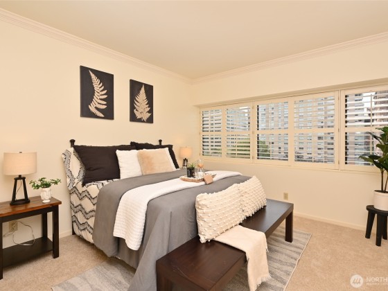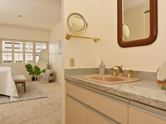 Bright and airy, this 1,250 sf SW corner unit features windows all around with lots of natural light. Plenty of wall space to showcase art and special treasures. The neutral plaette is accented by plantation shutters. Enjoy beautiful sunrises, mesmerizing sunsets and the magic of dancing city lights. The large lanai beckons with fresh air while over looking treetops, lush courtard, BBQ area and tennis/pickleball court. Resort amenities include 24-hour concierge service, rooftop pool, outdoor spa, exercise center, hospitality and guest suites. 1 walk in storage unit and 1 parking spot are included.