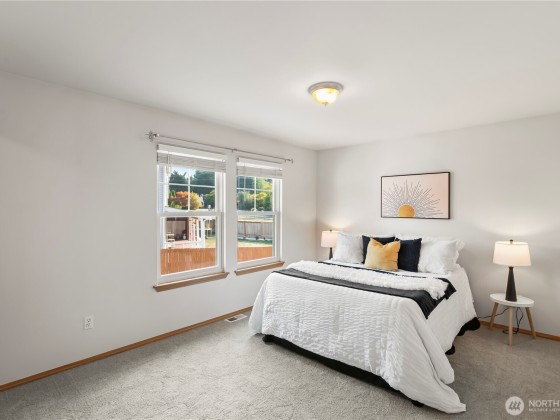 Extended private driveway off quiet cul-de-sac leads to stunning home in sought-after Eastmont neighborhood. Nearly 1/3 acre, expansive lot backs up to protected open space for complete peace and quiet. Meticulously maintained by original owner & full of updates, including newer roof/gutters, premium Andersen windows, real hardwoods and an updated kitchen finished w/ sleek granite counters, deep sink, SS appliances & gas cooktop. Upstairs features a large loft space and three sizable bedrooms ALL w/ walk-in closets! Huge primary w/ remodeled ensuite bath equipped w/ luxury standalone soaking tub. Newer water tank and furnace. TOP RATED SCHOOLS, minutes to Mill Creek town center, Costco, shopping, and seamless access to 405/I-5!
