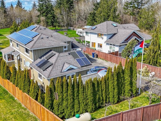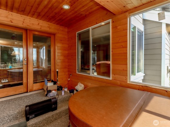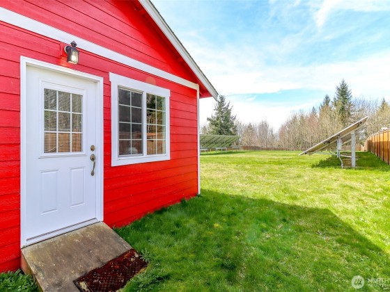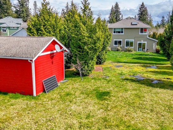 Enjoy country living on this 1 acre fully fenced parcel with peekaboo views of Port Susan. Gorgeous hard wood floors adorn this beautiful home with upgrades galore! Relax in the enclosed hot tub and sauna. Upstairs features 3 bedrooms and a bonus room. Primary bathroom features a beautiful oversized tub, shower and a walk in Jacuzzi tub. If cooking is your thing, you will love the open chef's kitchen with island and upgraded appliances. Main level office. Plenty of RV space. Adorable seperate building fully functional with power and AC-the perfect space for hobbies, working out, or just about anything! 3 car garage with 3 EV chargers. Seller just replaced roof and resealed the driveway. Home is on deeded land.