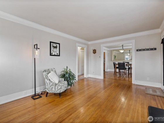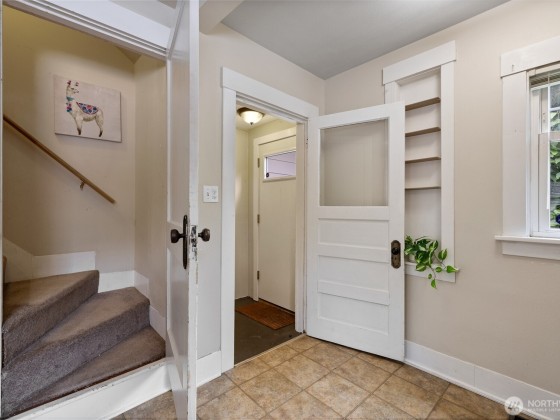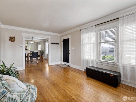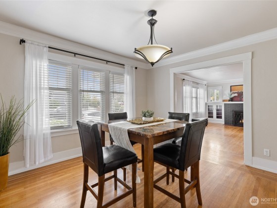Beautiful 1924 Craftsman blends original character with thoughtful updates. The remodeled kitchen offers abundant storage, while the formal dining room features a one-of-a-kind mirror salvaged from a 1930s barber shop. Enjoy gatherings in the spacious living room w/ original fireplace, built-ins, and original inlay hardwood floors. The main-level primary suite includes a cozy window seat/office nook, while two additional bedrooms await upstairs. A large unfinished basement and oversized garage provide endless possibilities. Remodeled in 2013 with new kitchen, baths, millwork, lighting, and appliances. Updated in 2019 with new sewer line, furnace/AC, and paint. New roof 2025. All just minutes from the best of Downtown and North Tacoma.