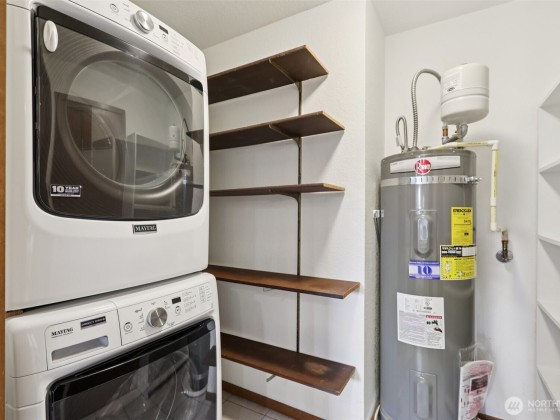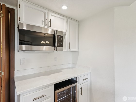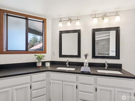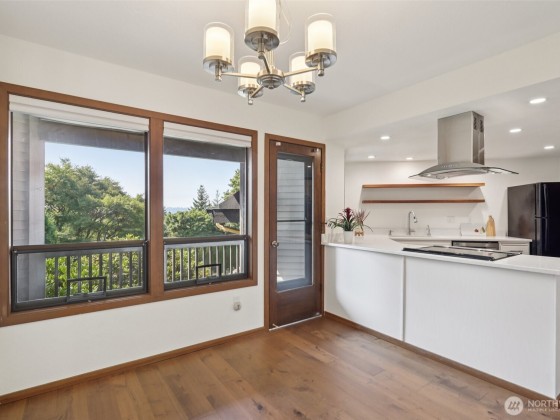 Stylish and modern living in the heart of Juanita—just a short stroll to the beach, shops & dining. The designer kitchen boasts Corian Quartz counters & backsplash, farmhouse sink, drink refrigerator, instant-hot appliance, walnut floating shelves & new dishwasher. Elegant engineered hardwoods, plush upgraded carpet, quiet bath fans & ceiling fans in the family room and bedrooms elevate daily comfort. Generous walk-in closets add storage. Step outside to enjoy vibrant sunsets from the patio or peek-a-boo views of Lake Washington in the fall & winter. A perfect blend of chic design & unbeatable location!