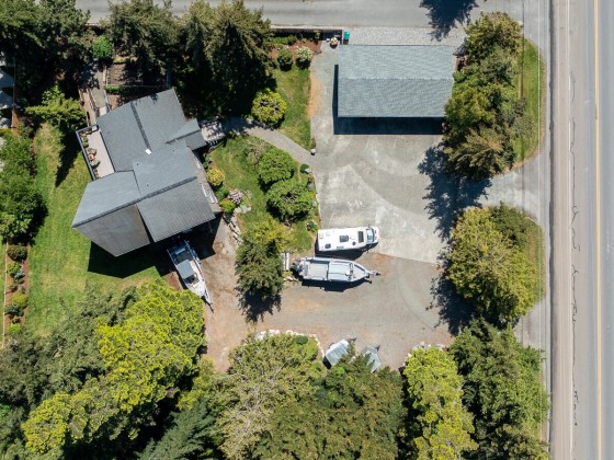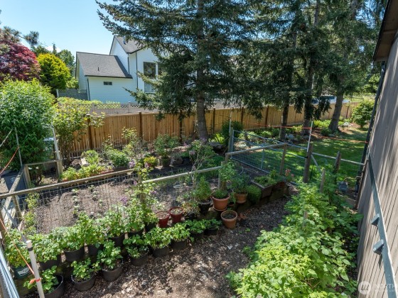 Hidden Gem on nearly half an acre. Tucked away on a dividable lot, this 3,500 sq ft home offers rare flexibility—Private retreat with beautiful backyard and deck, home is also perfect for multi-generational living. A large shop sits up front, while the main home is set back for added privacy. Inside, enjoy soaring ceilings, natural wood and stone slab counters, pine cabinetry, and durable Saltillo-look flooring. Two kitchens, two living areas, two laundries, and generous storage make this home incredibly versatile. The loft-style primary suite features a spa-like shower, and comfort is ensured with radiant heat floors, natural gas, and A/C. The level yard is rich with mature trees, flowers, fruits, and veggies—all behind a privacy fence.