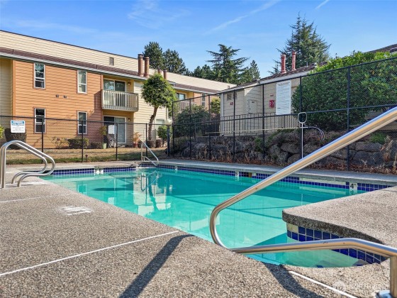 Welcome to this spacious & well-maintained condo in the heart of Kent! Step into a bright, open layout featuring a cozy fireplace, large living & dining areas, and private balcony w/peaceful greenbelt views. All generously sized beds, offering comfort and flexibility. The oversized primary includes a full ensuite bath and closet space for privacy and convenience. You’ll love the abundance of storage throughout the home, along w/in-unit laundry and large windows that fill the space w/natural light. The community landscaped grounds, a sparkling pool, and easy access to shopping, dining, parks, and transit. Whether you're settling into your first home or looking for low-maintenance living in a prime location, this home checks all the boxes.
