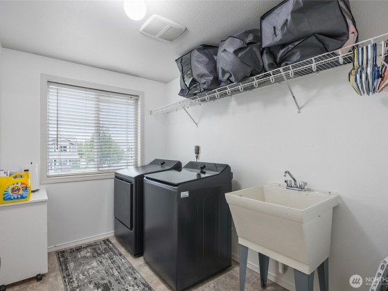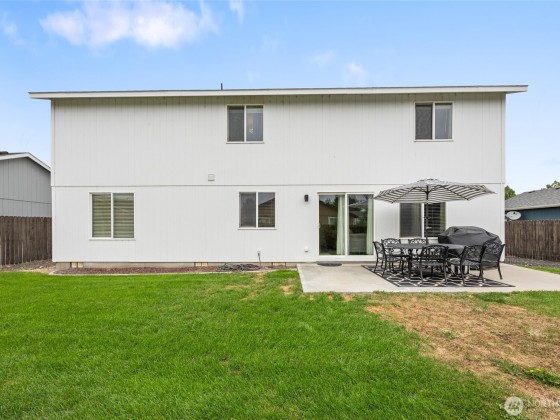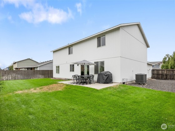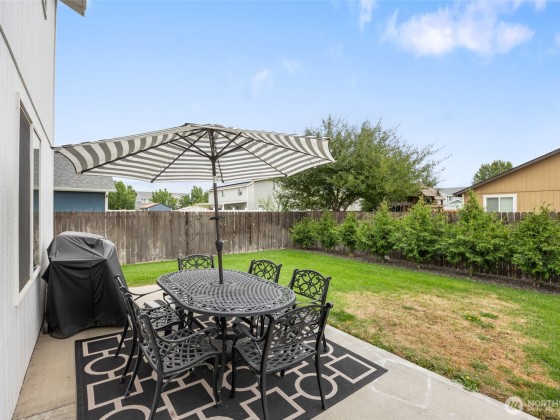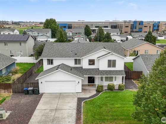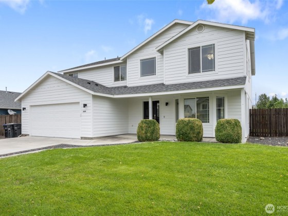 Updated 4-bedroom, 2.5-bath home nestled inside a desirable neighborhood close to downtown Moses Lake. Exterior features include: white paint on exterior, mature bushes and newly planted trees along back property line, fully fenced backyard, concrete back patio, gravel area to side of garage for RV/boat parking. Interior features include: laminate/tile flooring, modern carpeting on stair and hallway. Stainless steel kitchen appliances included, built in entertainment shelving in living area, open concept from kitchen to living provides space for entertaining and gatherings. Primary bedroom with dual vanity and tub/shower combo and oversized walk-in closet. Laundry room with wash sink, updated lighting fixtures, and more!
