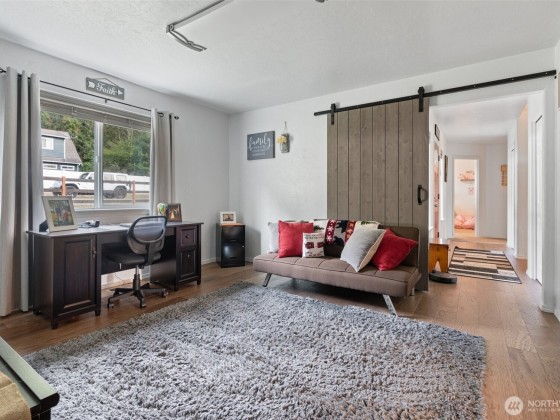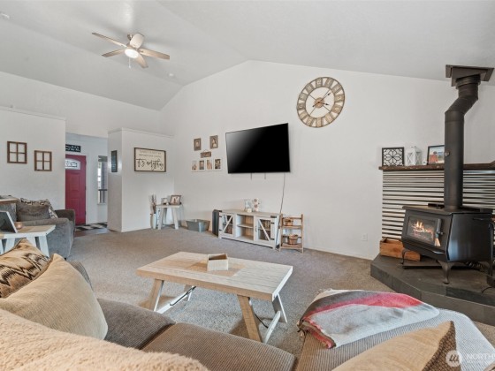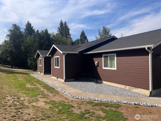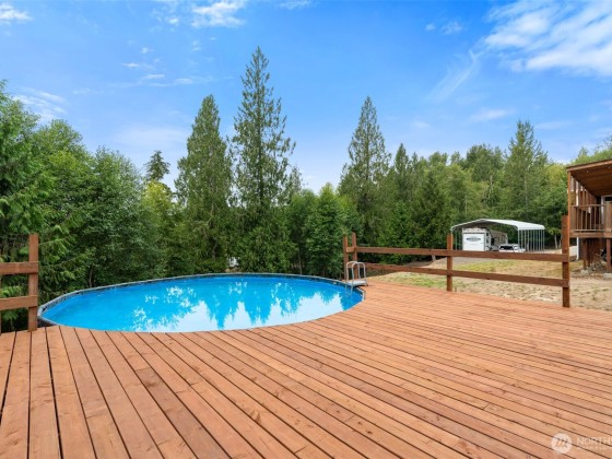 Escape to your own private lakeside retreat in this beautifully crafted home set on 8+ acres of peaceful waterfront property. Enjoy a spacious living room with vaulted ceilings & a cozy wood stove, flowing seamlessly into a dining area that opens to a covered deck. This 3-bedroom, 1.75-bath home includes an office/den & a primary suite with deck access & an oversized tiled shower. Year-round comfort with heat pump & A/C. Step outside to your private oasis featuring a sparkling pool with a privacy fence. Additional features include a gated entry, 2-car garage, and RV parking. Outdoor lovers will enjoy nearby rivers, lakes, and hiking trails. Ideally located between Seattle and Portland, this retreat offers both privacy and convenience.