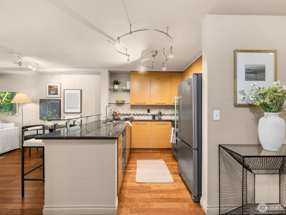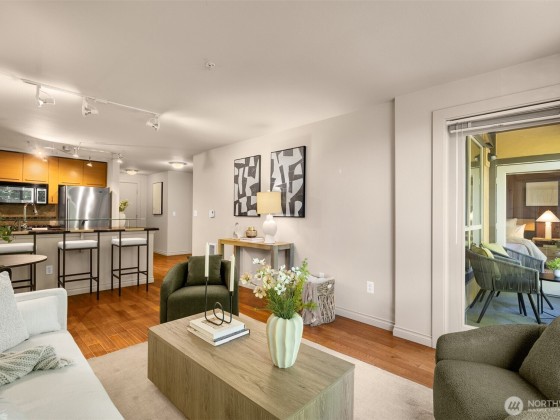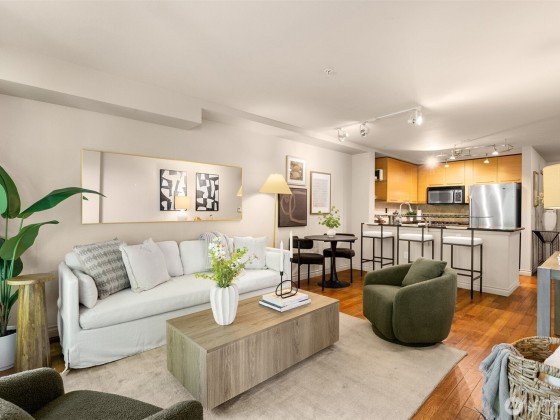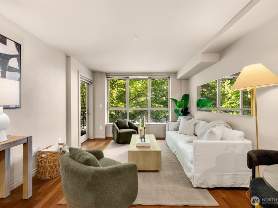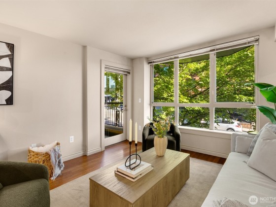 Enjoy modern, clean, spacious city living in an unbeatable location on the Pike/Pine corridor. This home features an open design, stainless appliances, hardwood floors, tons of extra storage, plus new windows. Light-filled private patio connects a welcoming living room to your large primary bedroom. Bonus den perfect for office space, plus large primary walk-in closet. 99 Walk-score, close proximity to Cap Hill Light Rail station, Downtown, Amazon HQ, amazing restaurants/night life, & more! One secure parking space, external storage unit, in-unit W/D. Building amenities include expansive rooftop deck, gym, art studio, theater, yoga studio, lounge w/ entertaining kitchen & a dog run. Pet friendly, no rental cap + recent common space updates.