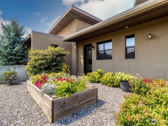 Experience sustainable luxury w/breathtaking views. This 40-acre estate, designed by architect Phillip Christofides, features 8-inch thick ICF walls for superior insulation & energy efficiency. Enjoy year-round comfort w/ a geothermal system, 3-zone radiant floor heating, & A/C. The 7,000 sq ft roof w/ deep eaves offer excellent sun protection & super insulation. Windows & doors designed for cross ventilation. All bedrooms have patio access, & the laundry/mud room includes a dog washing station. A 22K generator & a 700-foot deep well ensure reliability & pristine water. Includes extra 2 garage, greenhouse, & landscape irrigation. Just 21 minutes from downtown w/ panoramic views of the Walla Walla Valley, Cascade & Red Mountain.