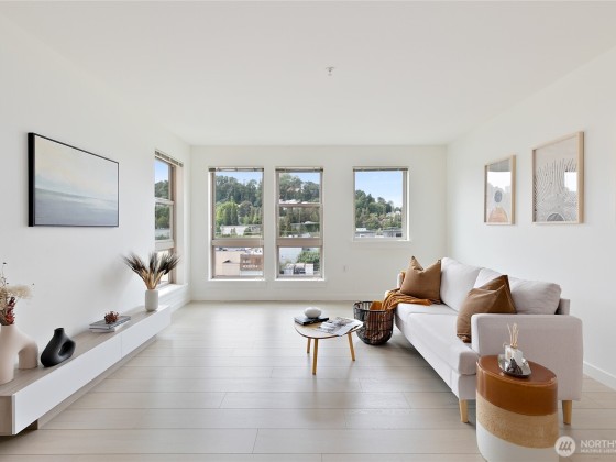 Enjoy Urban living at its finest. This immaculate 1 bedroom unit on the 4th floor features large west facing windows with beautiful territorial & city views, in-unit laundry, hard surface flooring, quartz countertops, updated appliances w/smart home features, custom closet systems, storage unit, & dedicated parking in a secure garage. Well-run HOA covers central hot water, sewer/garbage, & EQ ins. Expansive shared deck & common areas on 2nd floor. You could not ask for a better location. With a Walk Score of 89 you are just a block from the coming Judkins East-link Light Rail station, close to local coffee shops, grocery, & restaurants. Just a quick jaunt away you'll find T-Mobile Stadium & Lumen Field for sports & concert events.