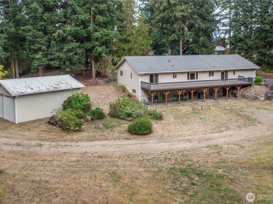 Tucked away in a serene and private setting, this exceptionally maintained home sits on just over an acre. The flexible floor plan offers versatility for a variety of lifestyles, while the spacious, light-filled kitchen is an inviting centerpiece for everyday living. A very large deck overlooks the property, perfect for entertaining or enjoying the peaceful surroundings. The grounds offer wonderful garden space, adding to the home’s charm and livability. An oversized attached two-car garage provides convenience, while a detached shop delivers ample room for projects, storage, or additional parking. A rare find that blends privacy, functionality, and pride of ownership.