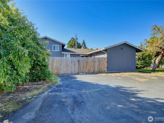 Welcome to the neighborhood! Close to local schools, hospital and town. This conveniently designed trilevel home is ready for you to move right in or make improvements, endless possibilities.. 2 bedrooms upper level and additional bedrooms on lower level. Well maintained with potential for you to add your own personal touch. Massive yard, private deck with fenced in area. Alley access parking. Plum and pear trees. Room to add on or do ADU. This home offers a lot of opportunities at an affordable price.