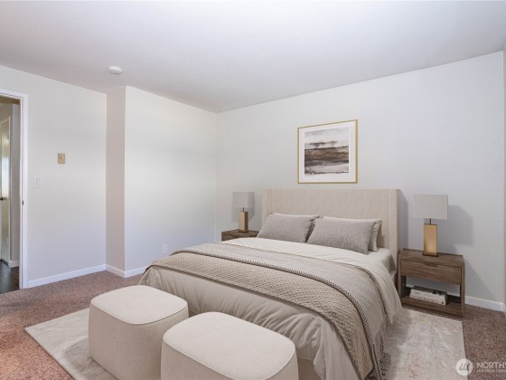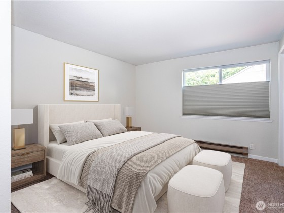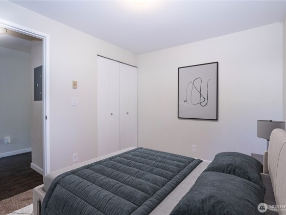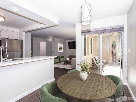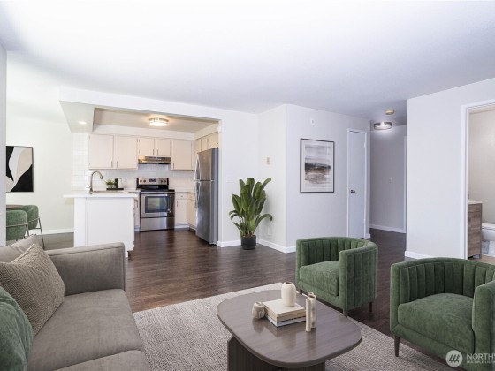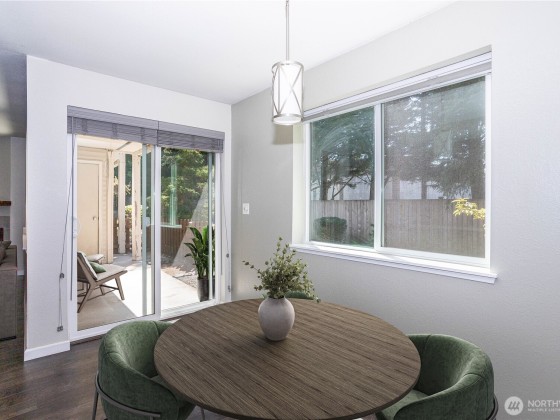 Welcome to this beautifully updated ground-floor condo in the heart of Renton Highlands! This inviting home features an open-concept layout with thoughtfully updated finishes, including updated windows, sliding glass door, elegant millwork, modern tiling, Pergo-style hardwood floors, and plush carpet throughout. The spacious layout includes a 2 bedrooms with a primary bath and an additional half bath for guests. The gourmet kitchen comes with stainless steel appliances, quartz countertops, and a sleek tile backsplash. Complete with a covered patio ideal for BBQs and relaxing evenings. Enjoy the convenience of ample parking with EV Charging and a location close to I-405,Boeing, top-rated schools, groceries, parks and The Landing.